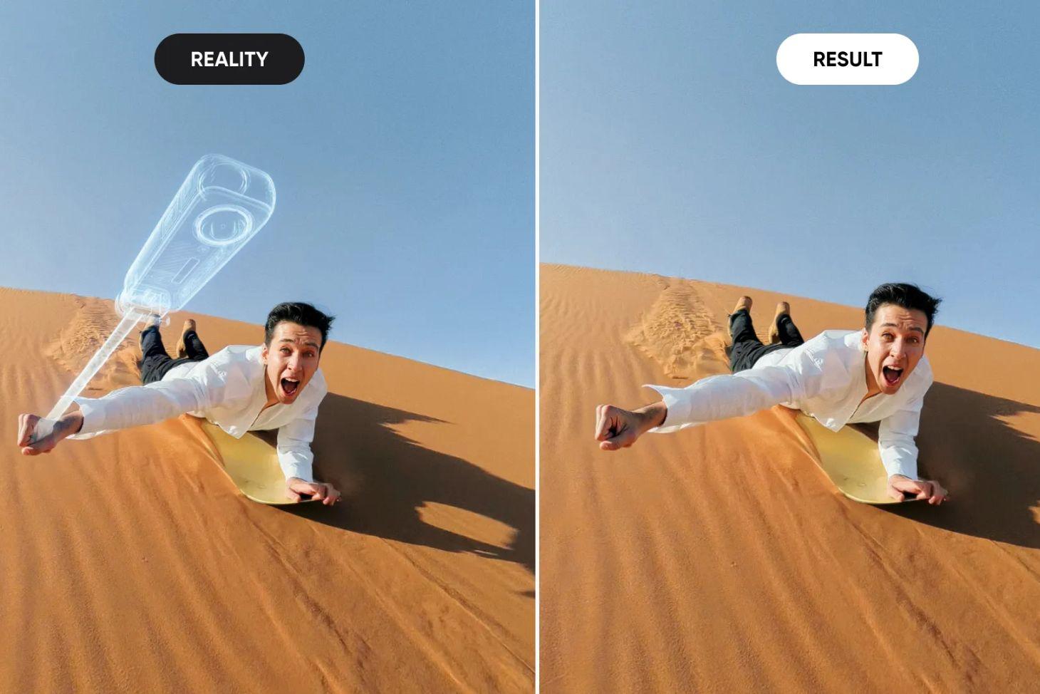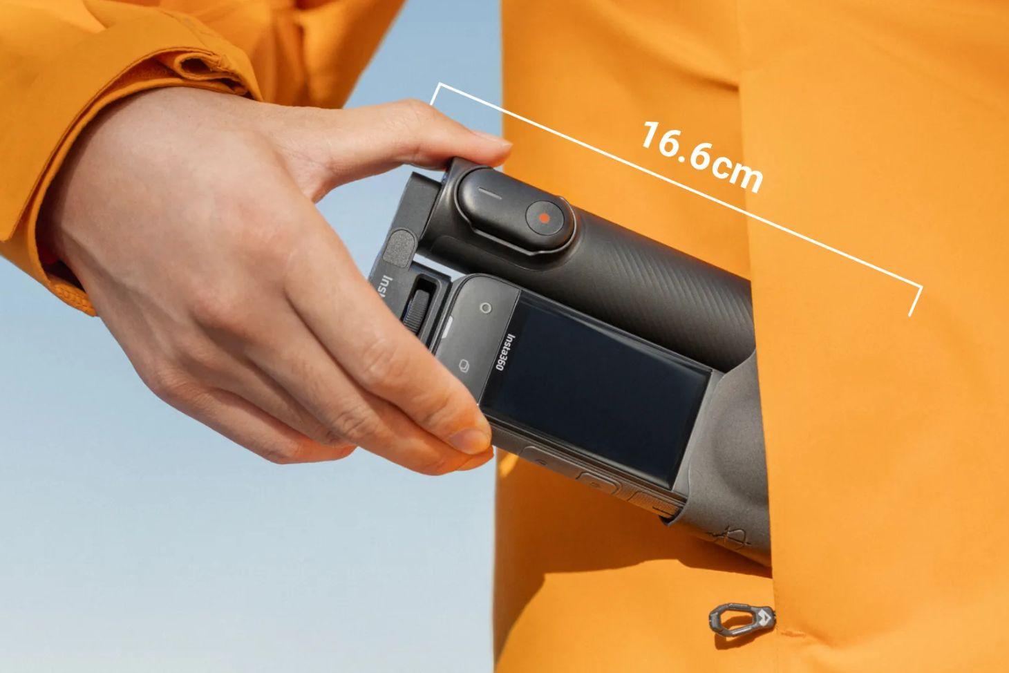 The selfie stick extends to 23 inches when fully opened and remains invisible in 360º shots, giving you impossible third-person perspectives.